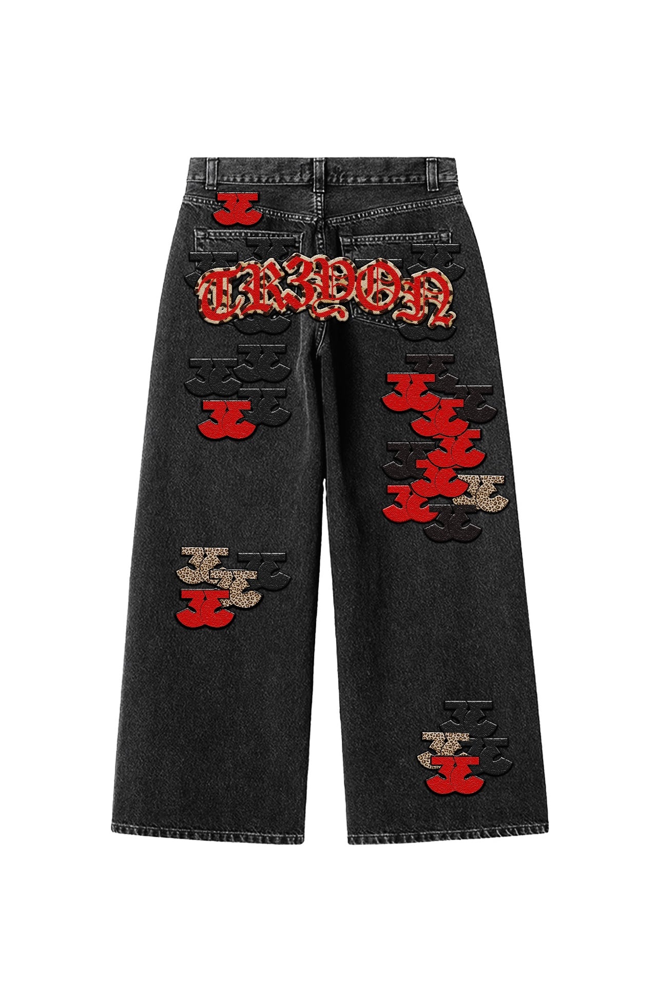 Fifty-four individually cut full-grain leather emblems are precision-applied over a structured luxury denim base, creating a bold, armored silhouette from every angle. The natural grain remains intact, allowing each piece to develop character and depth over time.