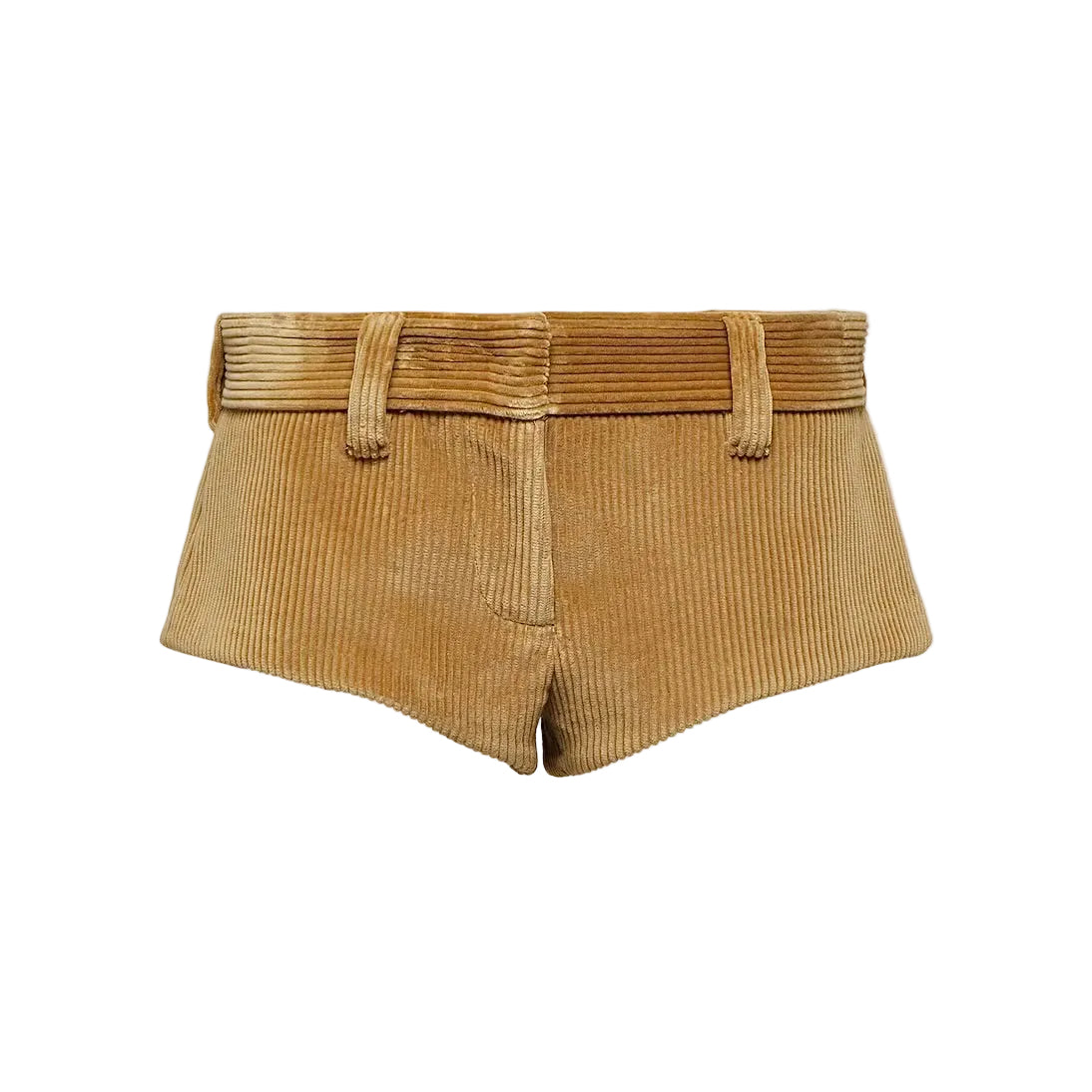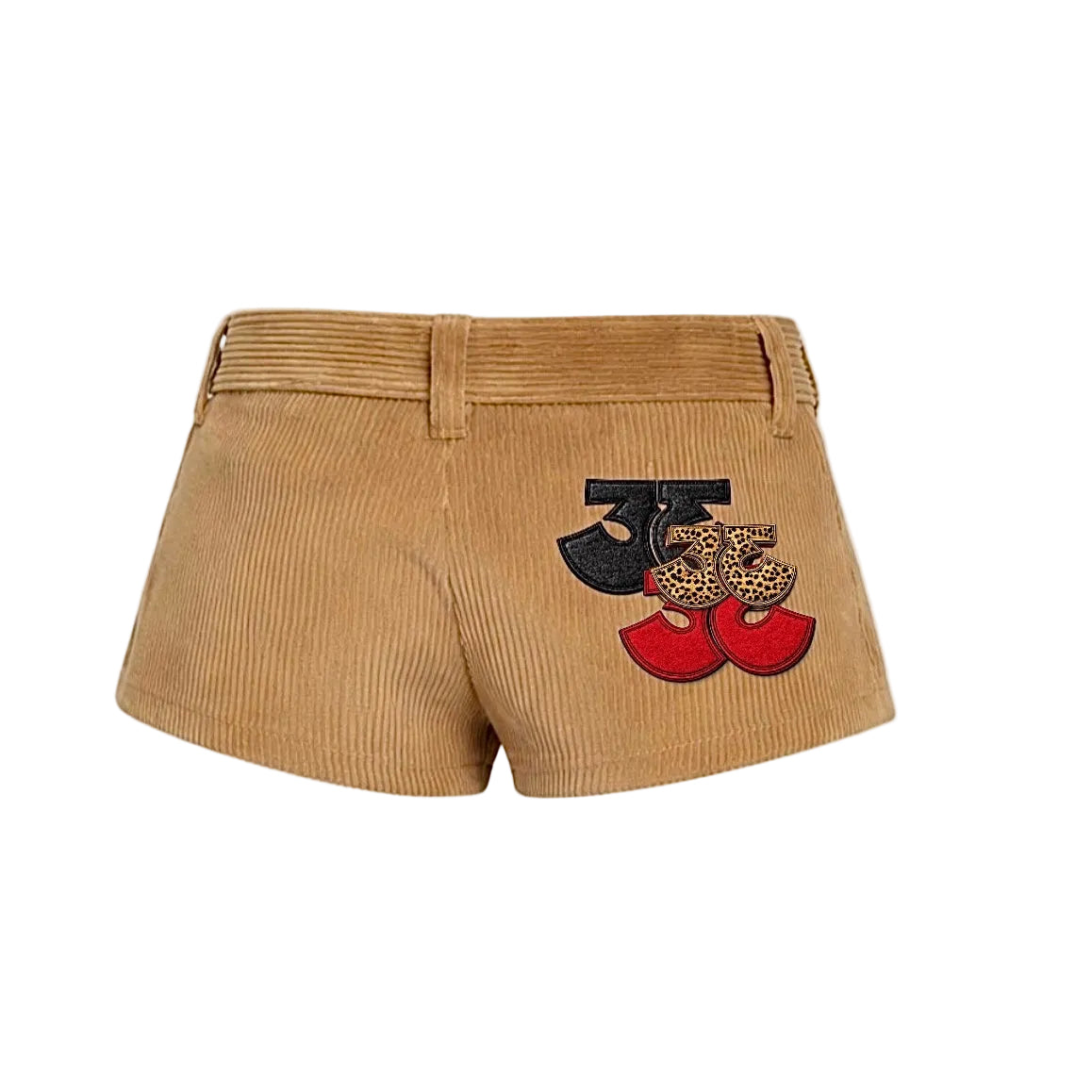 The TRӠYON VALÈRE is a low-rise corduroy silhouette engineered for presence. Designed with a sculpted, body-contoured cut, VALÈRE balances softness and authority in a refined runway proportion. Crafted in structured corduroy with a clean, pocketless back, the silhouette remains uninterrupted — allowing the statement TRӠYON emblem to command attention. The signature layered appliqué, executed in tonal, cheetah, or bold contrast variations, transforms a minimal short into a deliberate design piece. VALÈRE is not casual. It is composed. It is controlled femininity with edge. A foundational runway silhouette within the TRӠYON house.